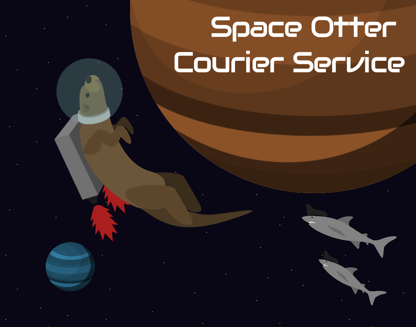 Welcome to your new job at S.O.C.S. (Space Otter Courier Service)! Your job is to deliver as many packages as you can during your shift, all while avoiding hungry pirate sharks. Good luck!